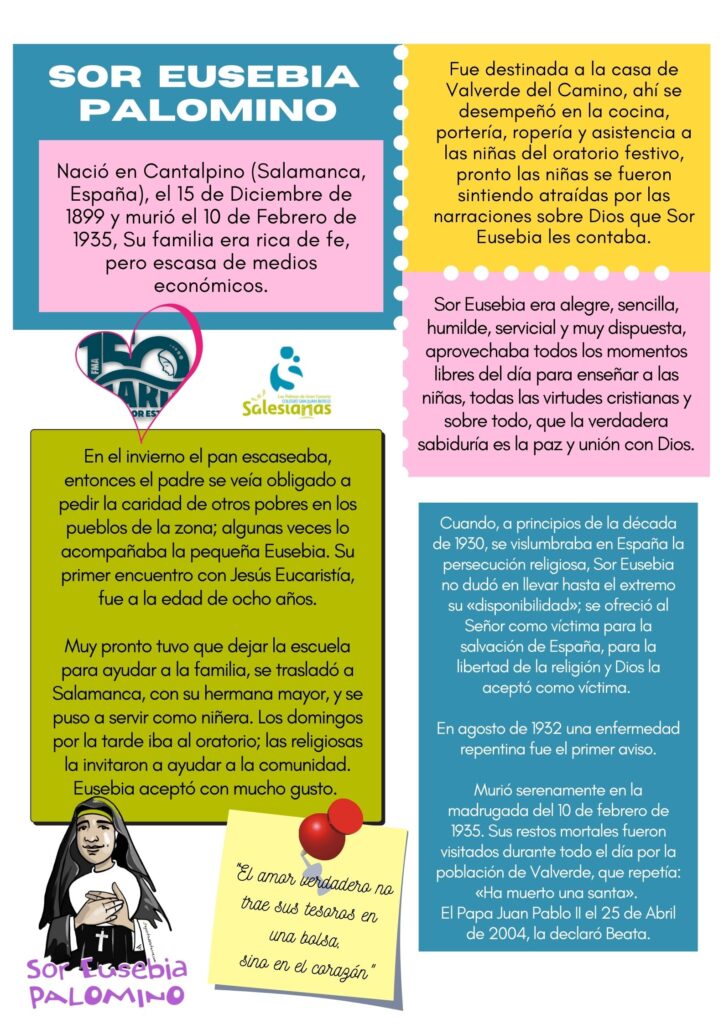 Hoy celebramos el día de Sor Eusebia Palomino, beata salesiana de familia humilde que... -